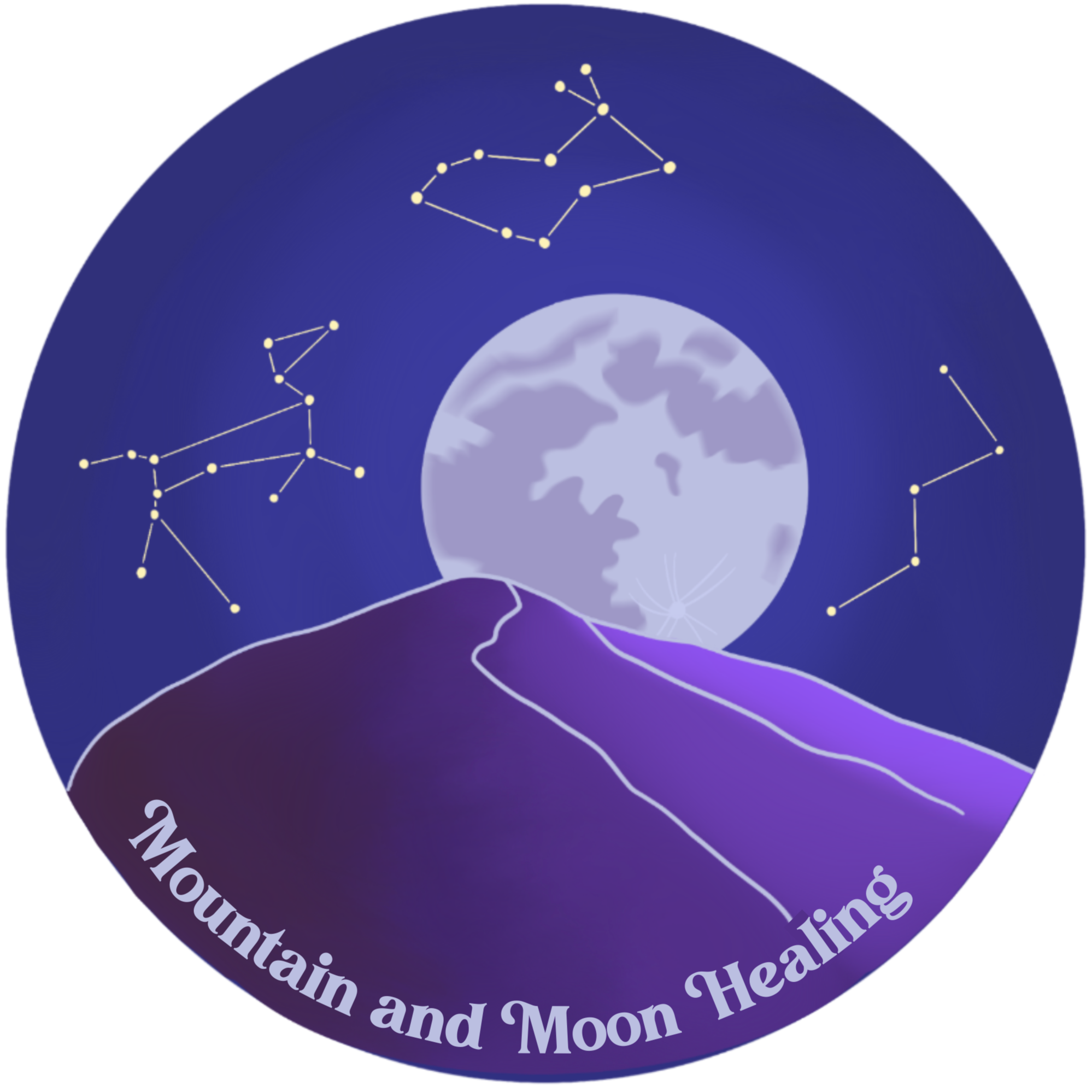 Mountain and Moon Healing’s logo is a map of my roots. At its center is Snake Mountain in Vermont, where I grew up. A place of stillness, breath, and quiet becoming. This outline grounds me. It’s my reminder of home.Above the mountain, the sky holds three constellations, ones my mom used to tell stories about as we camped beneath the stars:• Cassiopeia - the queen placed in the sky for her pride. A symbol of cycles, reflection, and the stories we carry and transform over time.• Canis Major - the loyal guardian. Watchful and devoted. A constellation of intuition, inner knowing, and the truths we carry even when the path isn’t clear.• Lepus - the hare. A creature of movement and transformation.Together, the dog and the hare exist in an endless celestial chase, not meant to meet, but never still. Their motion is a mirror: we are always chasing something. Healing, clarity, becoming. Reinventing ourselves with each return.And behind it all, the moon rises. Soft, steady, and luminous. A quiet guide through every phase. It reminds me that healing doesn’t happen all at once. It moves in cycles. It asks us to return, to reflect, to soften, and to begin again.Mountain and Moon Healing was born from those nights. Where earth met sky, where stories lived in the stars, and where the light landed gently on who we were becoming.This logo came to life through the brilliant heart of Bre at brelegan.com!