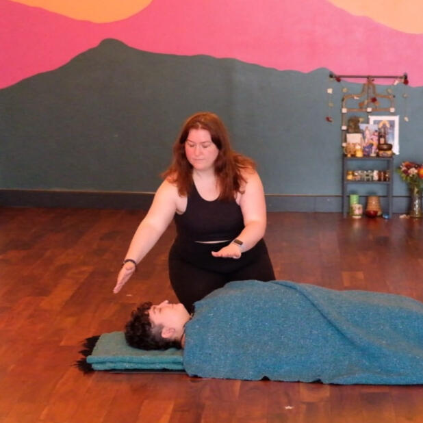 The first time I truly experienced yoga beyond the āsanas (physical poses) was in a class near my college. We practiced prāṇāyāma (regulation of breath) and connected inward, and week after week I left feeling more in tune with my inner world. That sense of connection sparked a passion for exploring yoga and its philosophy, a curiosity that continues to guide me today.I teach to offer a space where others can explore, connect, and relax safely. I hope my classes and Reiki sessions feel warm, cozy, and welcoming. A place where people can be themselves, be authentic, and feel seen and accepted. With a calm, supportive energy I guide students with choice-based modifications and approachable yogic philosophy, creating a space to move, breathe, and feel at ease.